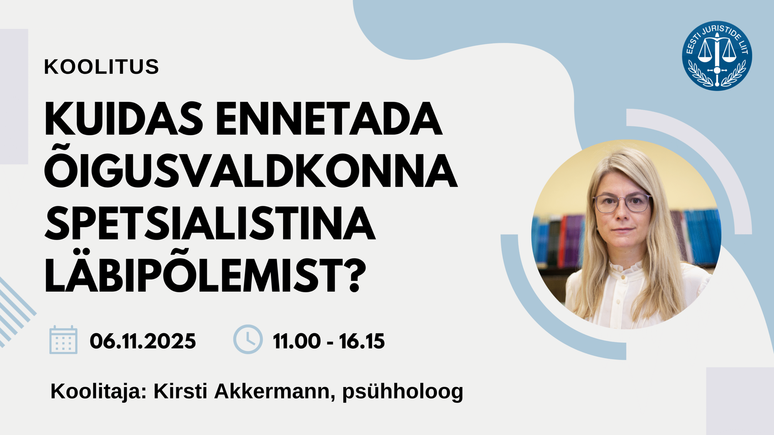 Koolitusseminari eesmärk on tõsta õigusvaldkonna spetsialistide teadlikkust tööstressi ja läbipõlemise mõjust ning pakkuda tõenduspõhiseid teadmisi ja praktilisi tööriistu, et ennetada läbipõlemist nii isiklikul kui ka organisatsiooni tasandil. Osalejad õpivad ära tundma varajasi läbipõlemise hoiatusmärke, mõistma oma töövaldkonna eripärast tulenevaid riske ning rakendama tõhusaid strateegiaid enda ja kolleegide toetamiseks.